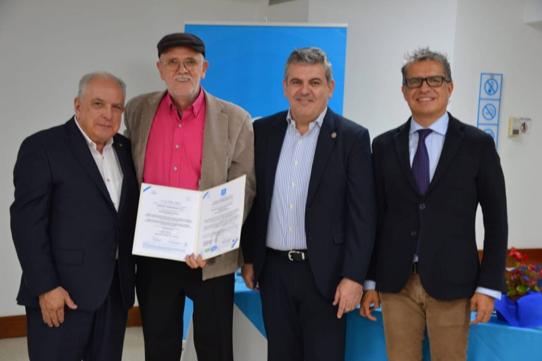 De izquierda a derecha Héctor Arango Gaviria, Presidente del Consejo Directivo de Icontec, Ramón Elías Bustamante Vélez, Gerente de Gestión y Conocimiento S.A.S., Juan Felipe Mora, Director Regional Antioquia, Chocó y Eje Cafetero de Icontec y Leonardo Fuquen, Director Comercial Colombia e Internacional de Icontec